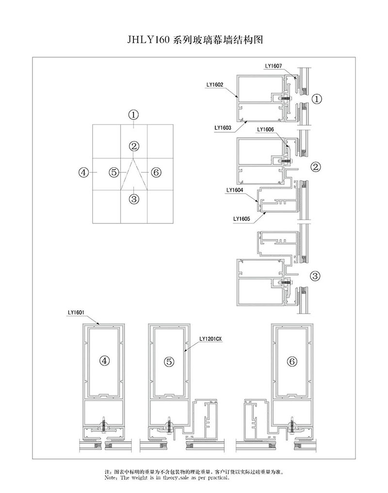 160 系列玻璃幕墻結(jié)構(gòu)圖